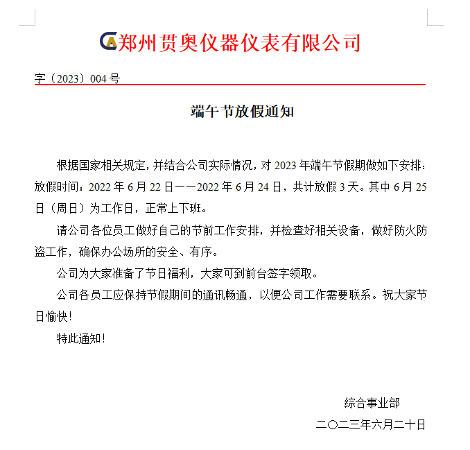鄭州貫奧儀器2024年端午節(jié)放假通知