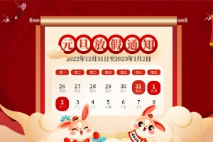 2023年元旦佳節(jié)將至,首先向全體員工致以節(jié)日的問(wèn)候,為了大家能度過(guò)歡樂(lè)、祥和、平安的節(jié)日,特提醒全體人員注意以下幾點(diǎn): 1.2023年元旦放假時(shí)間:自2022年12月31日至2023年1月2日,放假3天。2023年1月3日(星期二)照常上班。 2.各部門(mén)在節(jié)前要組織一次安全檢查,杜絕一切安…
