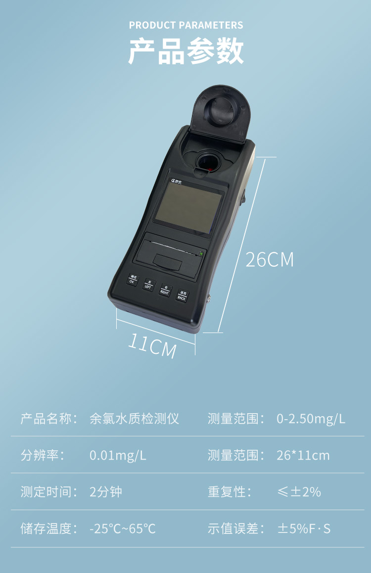 氯專項(xiàng)水質(zhì)檢測(cè)儀參數(shù)配置: