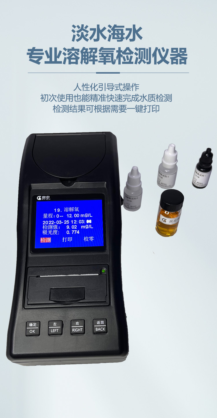 溶解氧水質(zhì)檢測儀主要用于飲用水中的溶解氧參數(shù)的測定。本儀器可廣泛用于水廠、養(yǎng)殖、環(huán)保等行業(yè),是常用的戶外及實(shí)驗(yàn)室水質(zhì)檢測儀器。