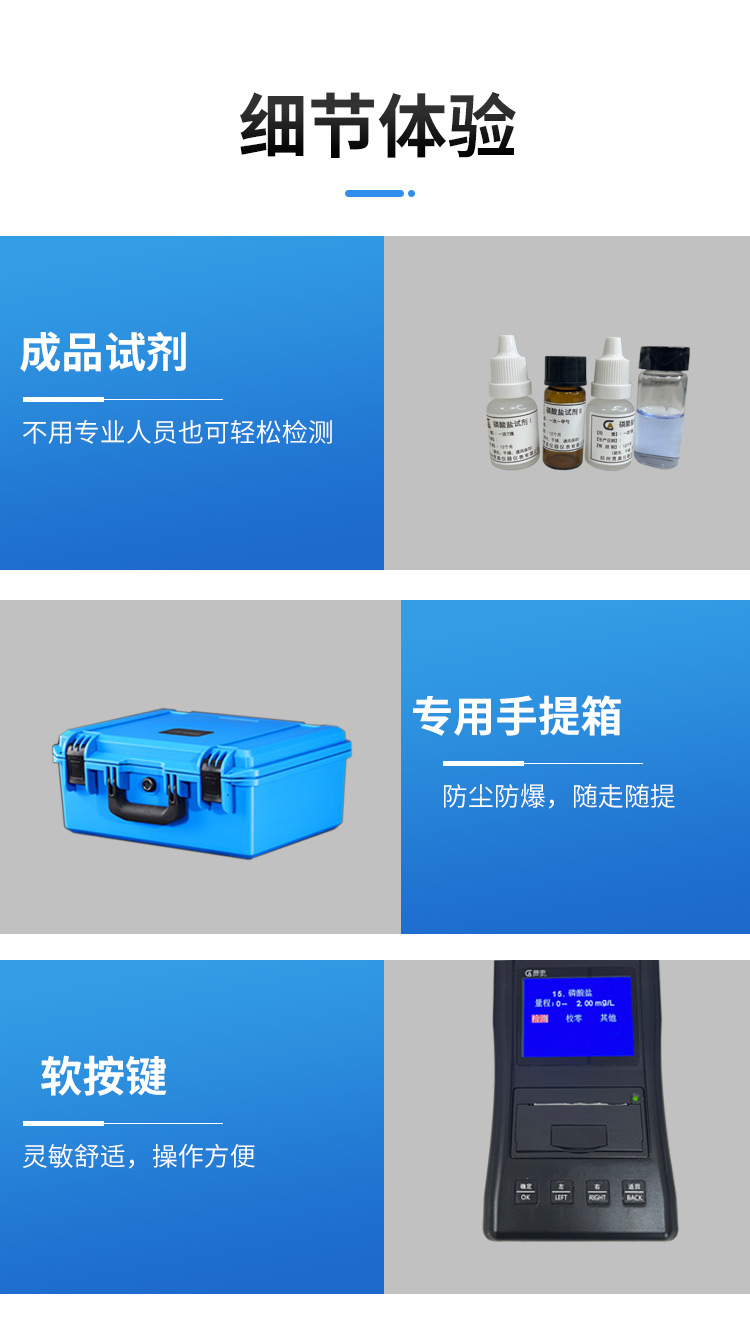 磷酸鹽水質(zhì)檢測儀主要用于飲用水中的磷酸鹽參數(shù)的測定。本儀器可廣泛用于水廠、養(yǎng)殖、環(huán)保等行業(yè),是常用的戶外及實驗室常用儀器。